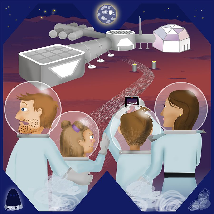Roland steckt in der Luftschleuse fest und muss nicht nur dafür beten und hoffen, dass ihn seine Familie befreit, sondern auch dafür, dass seine Atemluft reicht. Der Mars ist kein Spielplatz – das merkt die Familie Meyer langsam an jeder Ecke. Auch ein Rundgang auf dem Mars ist etwas aufwändiger als ein Sonntagsspaziergang auf der Erde. Carlo und Carlotta sollen die Umgebung ihrer Mars-Station kennenlernen und werden allein auf eine kleine Erkundungsmission geschickt. Das gefällt ihren Eltern natürlich gar nicht. Aber das ist nichts im Vergleich zu der unheimlichen Situation, mit der die Familie nach der Rückkehr der Kinder konfrontiert wird. Carlo und Carlotta haben ihre Eltern noch nie so blass gesehen.