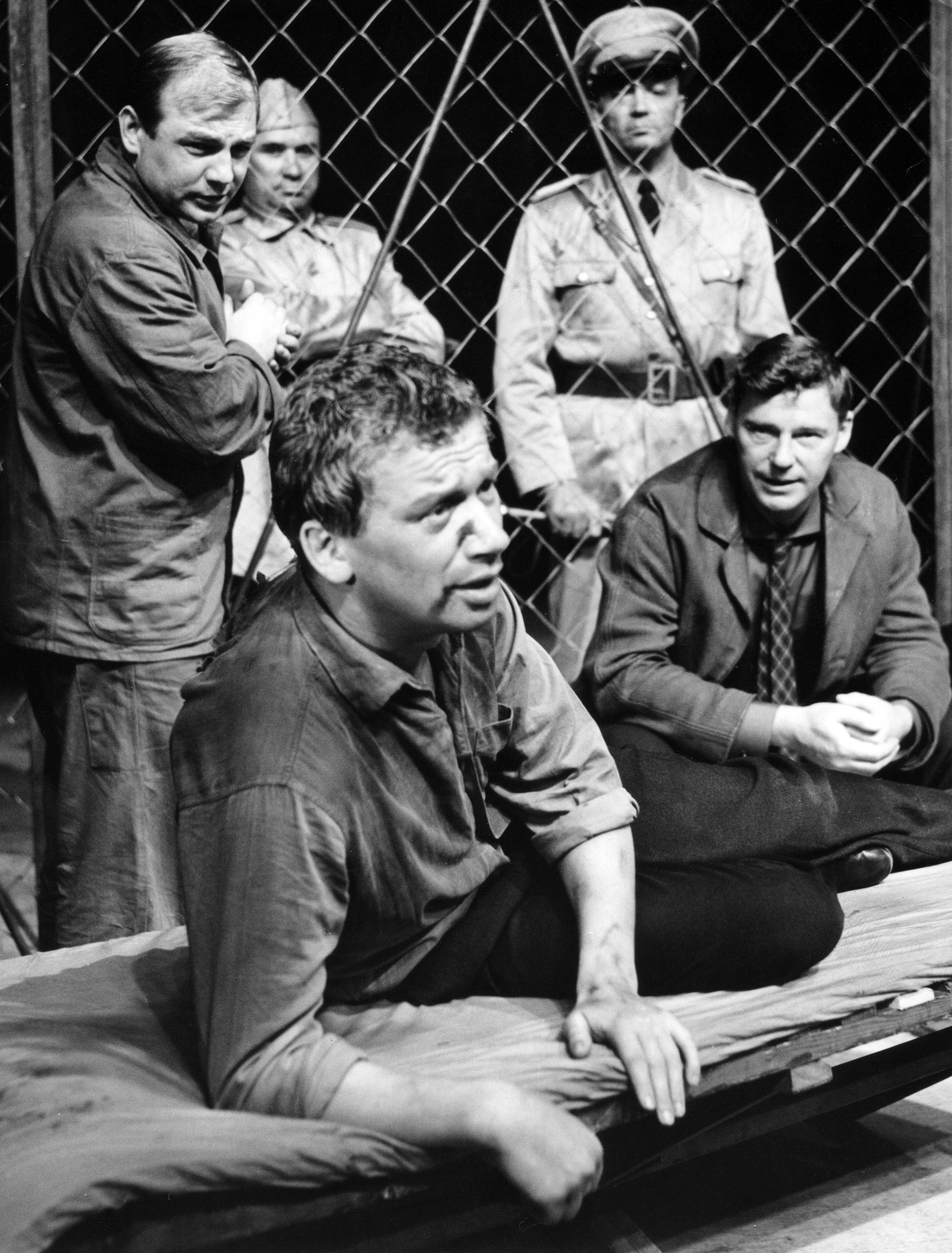 Szene aus "Zeit der Schuldlosen" mit Heinz Reincke (vorn) als Attentäter, Bruno Dallansky (l.) als Drucker und Max Eckard (r.) als Ingenieur, 1961.