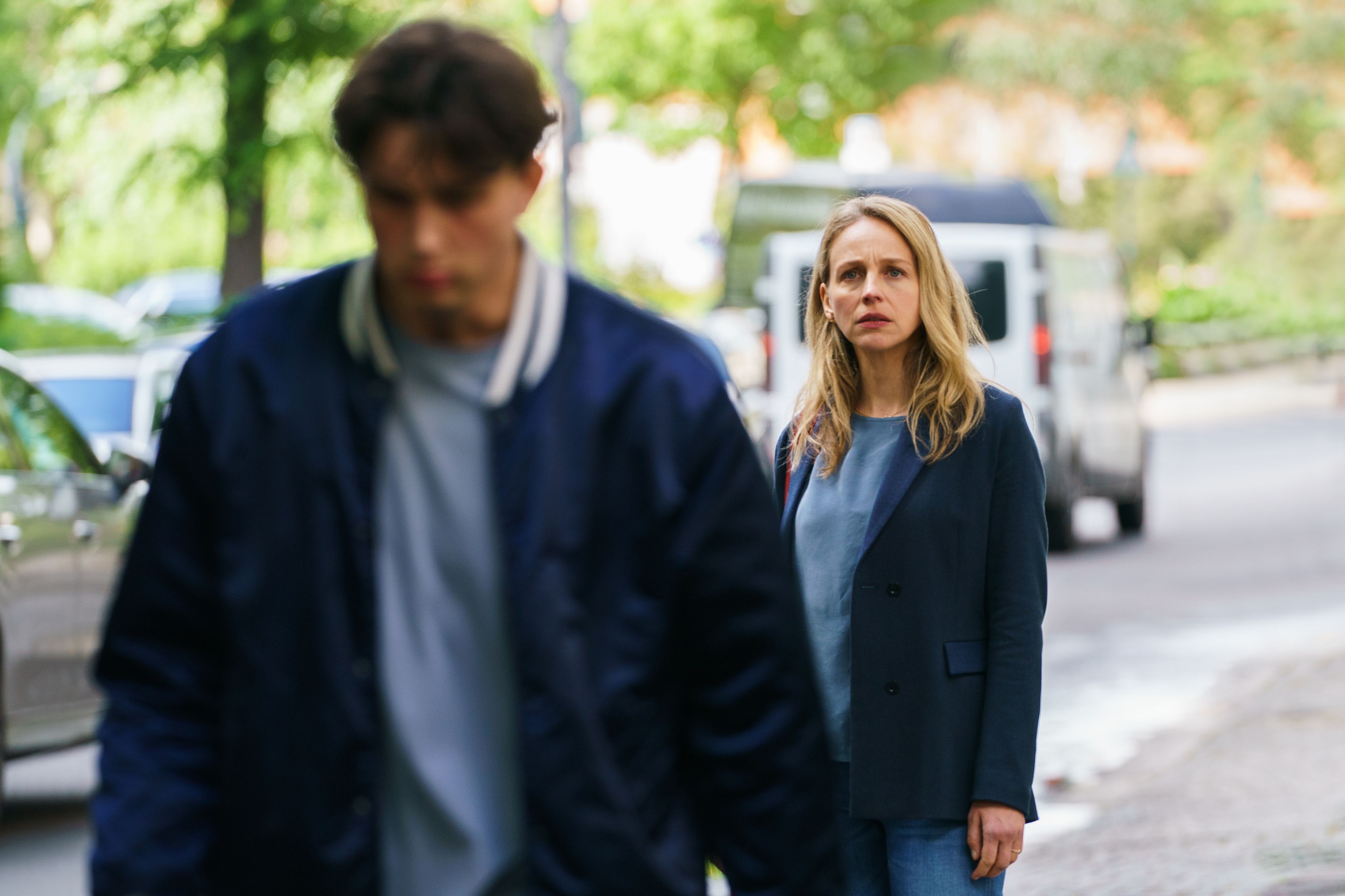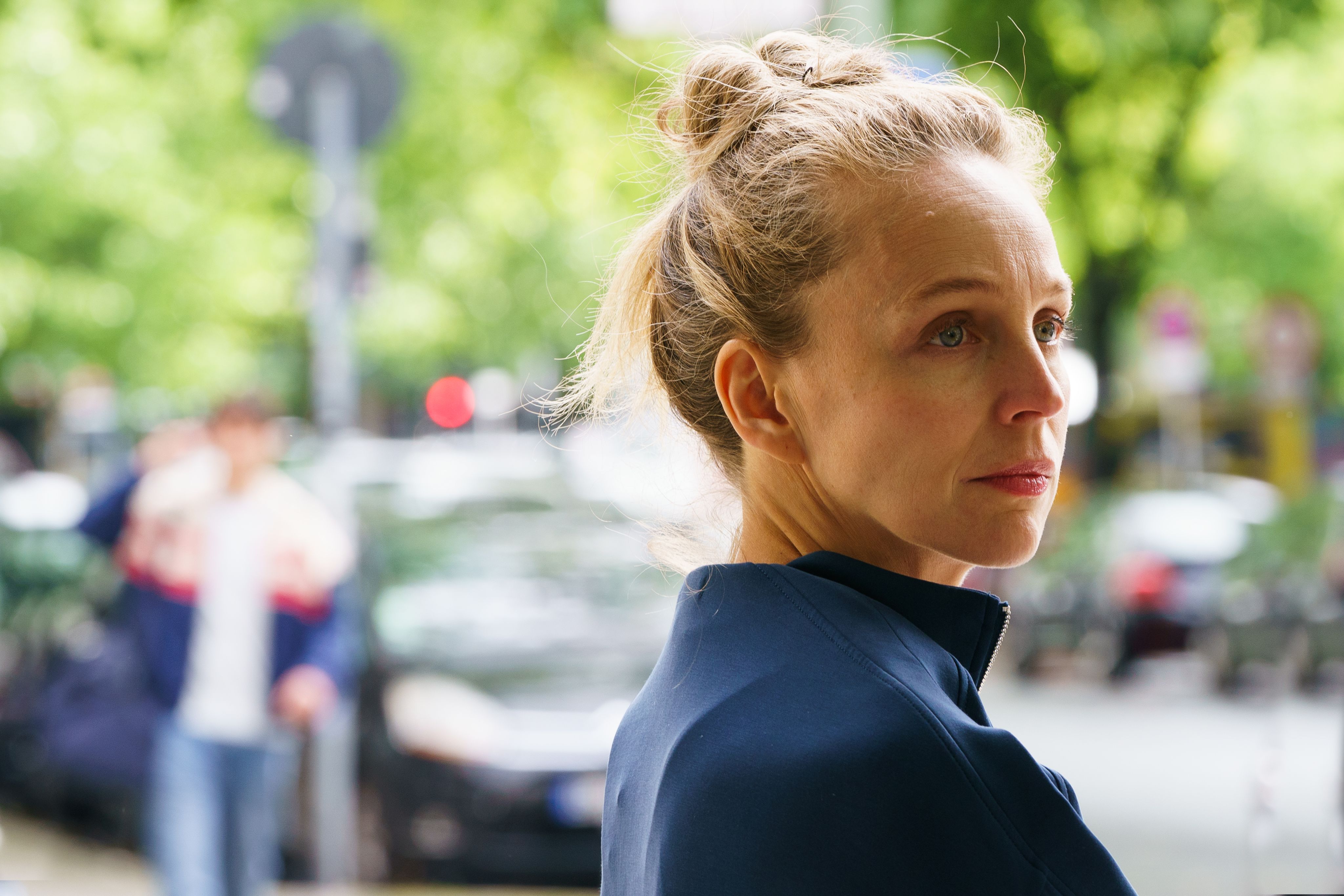 Durch Gespräche mit der Autorin Laila Stieler und der Regisseurin Buket Alakuş wurde diese Figur in der Vorbereitung viel tiefer und viel wärmer und emotionaler für mich, als ich sie zuerst gelesen hatte. Zunächst war Katja für mich erst einmal eine Frau, die ein Standing hat als Business-Coach und sich als Selbständige durchschlägt. Sie hat einen toughen Zugriff aufs Leben und macht Yoga als Ausgleich. Katja ist irgendwann an einen Punkt gekommen, an dem sie gemerkt hat, dass das Leben so, wie sie es als Familie führen, nicht gut ist – Corona wird dafür sicherlich ein Zünder gewesen sein. Das hat diese kleine Familie auseinandergerissen. Ich bin im wahren Leben auch eine getrennte Person und kann das sehr gut nachvollziehen. Und da gibt es ja auch verschiedene Abstufungen. Hier ist es so gelagert, dass sich Nadja getrennt hat, der Vater aber immer wieder diese Familie sucht, die Katja überhaupt nicht will. Dieser Zwiespalt, dieses Zerrissene legt sich natürlich auch auf Anton. Und so begleiten die beiden Eltern mit einer gewissen Hilflosigkeit diesen jungen Mann beim Erwachsenwerden. Für mich wuchs diese Mutterfigur im Laufe des Drehs in eine durchlässige Frau, der man ansehen kann, wie schwer das ist: wenn man für sich einsteht und trotzdem für das Kind da sein will, wenn man einen jungen Menschen ins Erwachsenenleben begleiten will und die Hauptaufgabe dabei Loslassen ist.