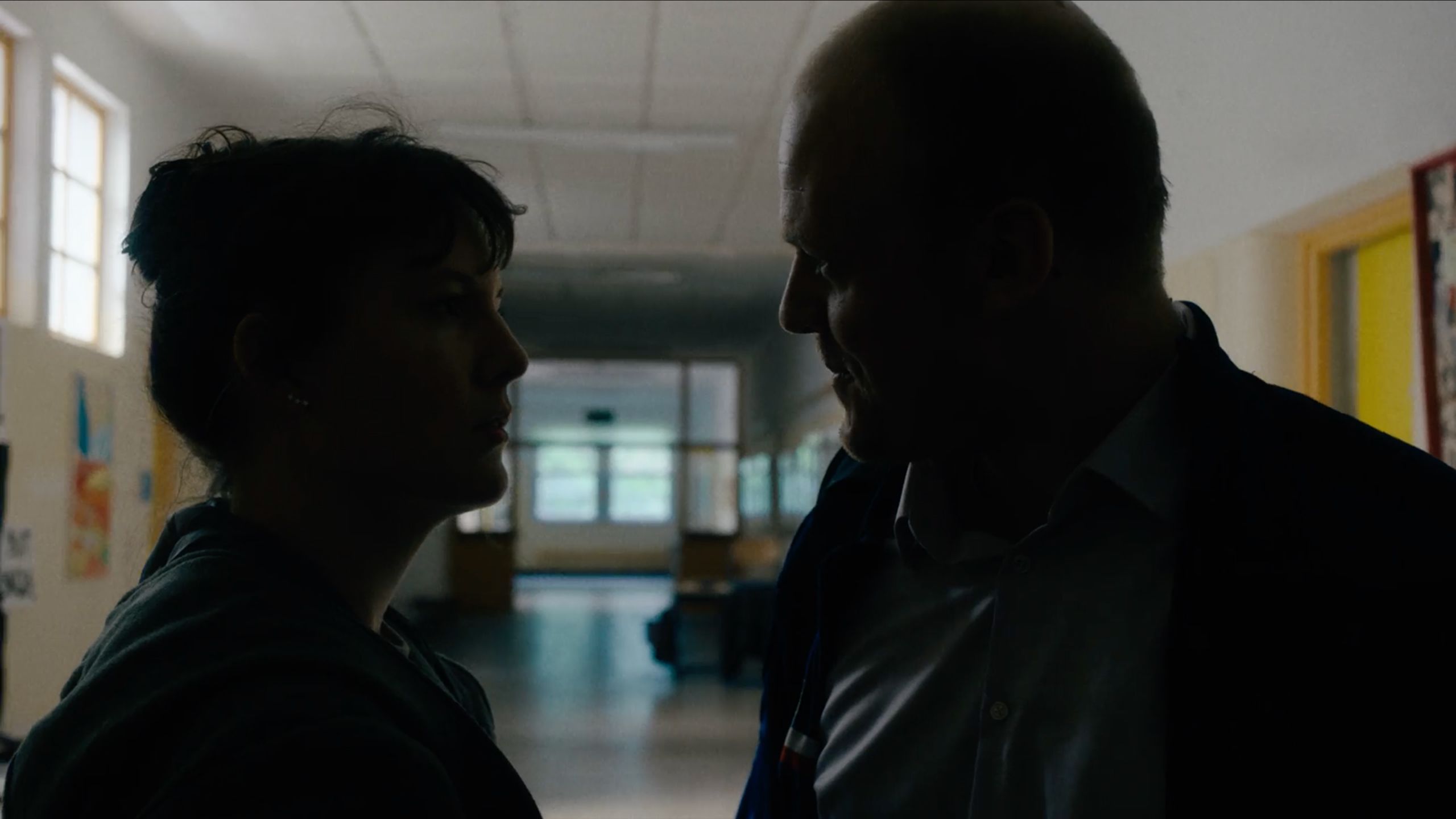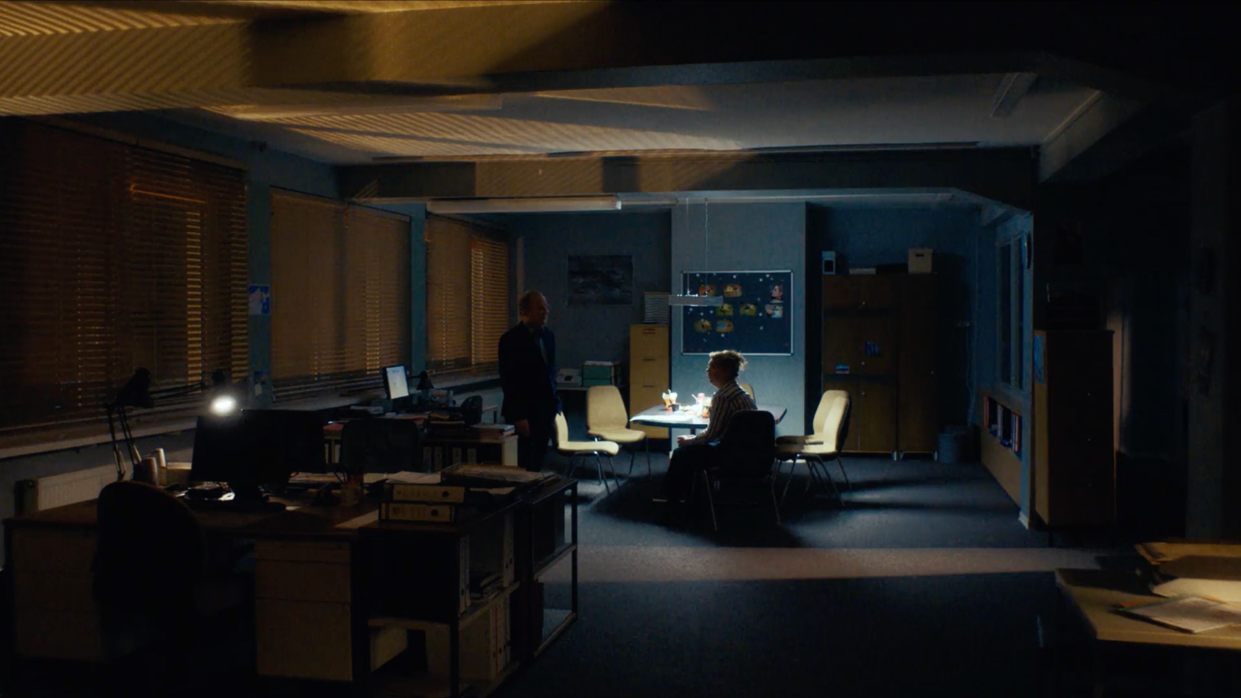 Ja, unbedingt! Wenn wirklich mal eine Begegnung stattfindet, will ich sie so erzählen, dass sie sich nicht einfach verspielt. Das meine ich mit Tempowechsel. Also, man sieht irgendwie Phänomene unserer Zeit und unserer Welt. Und dann im richtigen Moment anzuhalten, stehen zu bleiben und genau zu schauen, darauf kommt es, glaube ich, an. Relativ früh im Film – nachdem wir das erste Verhör mit Felix Lange und anderes sehr temporeich erzählt haben – zieht der Film die Handbremse, um einen kleinen Moment für Melly und Henning Röder zu schaffen. Dieses Gespräch in einer extremen Entschleunigung zu erzählen, damit das Publikum spürt, dass hier etwas von emotionaler Tragweite passiert, ist mir sehr wichtig. Auch zwischen Melly Böwe und Katrin König gibt es diese Momente starker Verbundenheit.