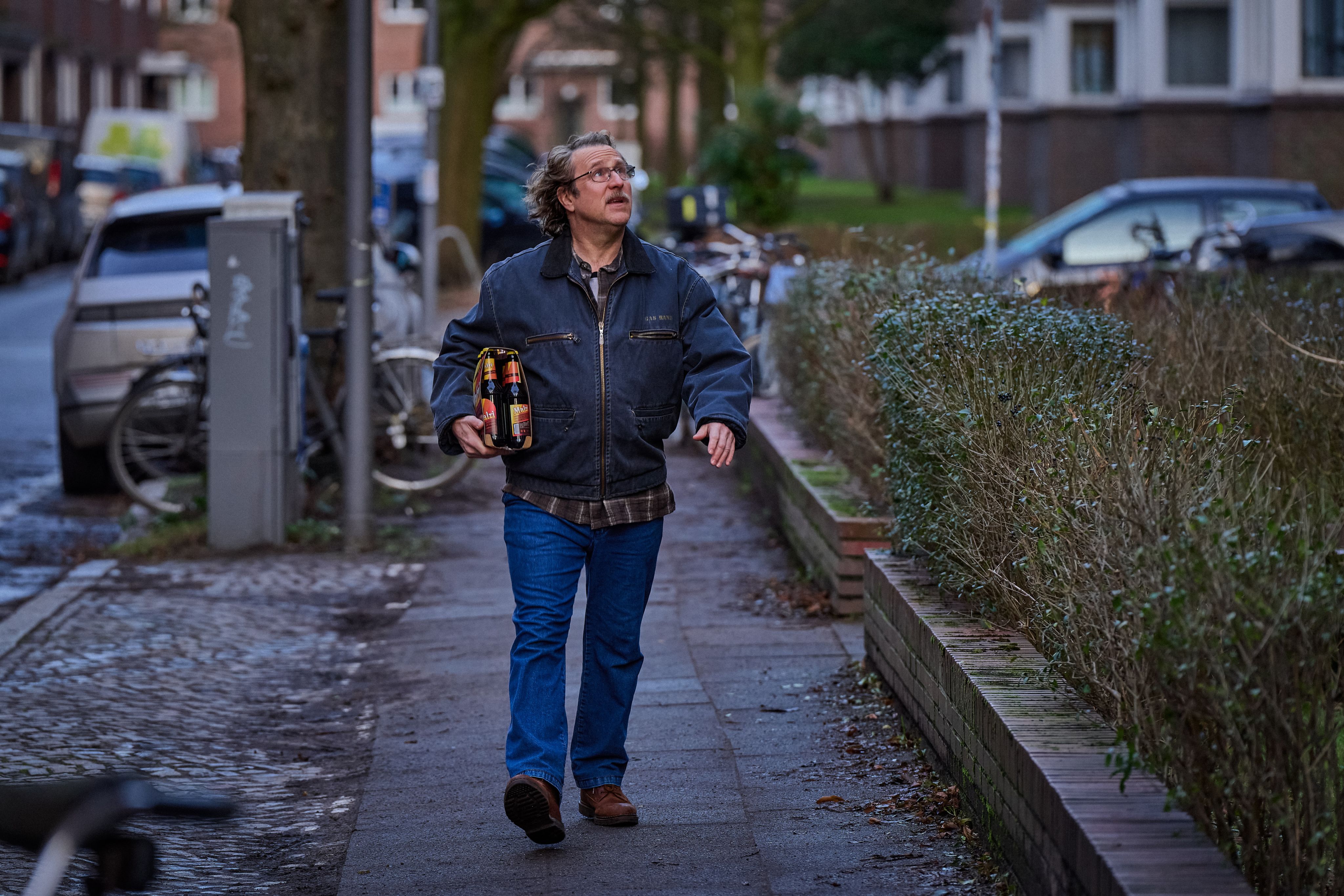 Beim Spielen dachte ich: Ich will die Figur nicht zu früh aufweichen, sondern so lange wie möglich negativ und unangenehm bleiben. So wie in der Anfangsszene, die an Halloween spielt. Da mault Prange ein paar Kinder an, die Süßigkeiten sammeln, meckert über den Geruch von Kohlsuppe im ganzen Haus und pfeift den Besitzer eines im Flur abgestellten Fahrrads an. Er hat halt seine Prinzipien. Als dann sein Nachbar Horst Rhode dazukommt, sagt Prange zu ihm: „Seit 40 Jahren nervst du mich“. Woraufhin der antwortet: „Ja, aus Gründen.“ Ein grandios lakonischer Dialog. So etwas zu spielen, macht Spaß. Ich habe schon beim Auswendiglernen gemerkt, wie leicht die Texte in den Kopf fließen. Da ist Musik drin, nicht nur inhaltlich.