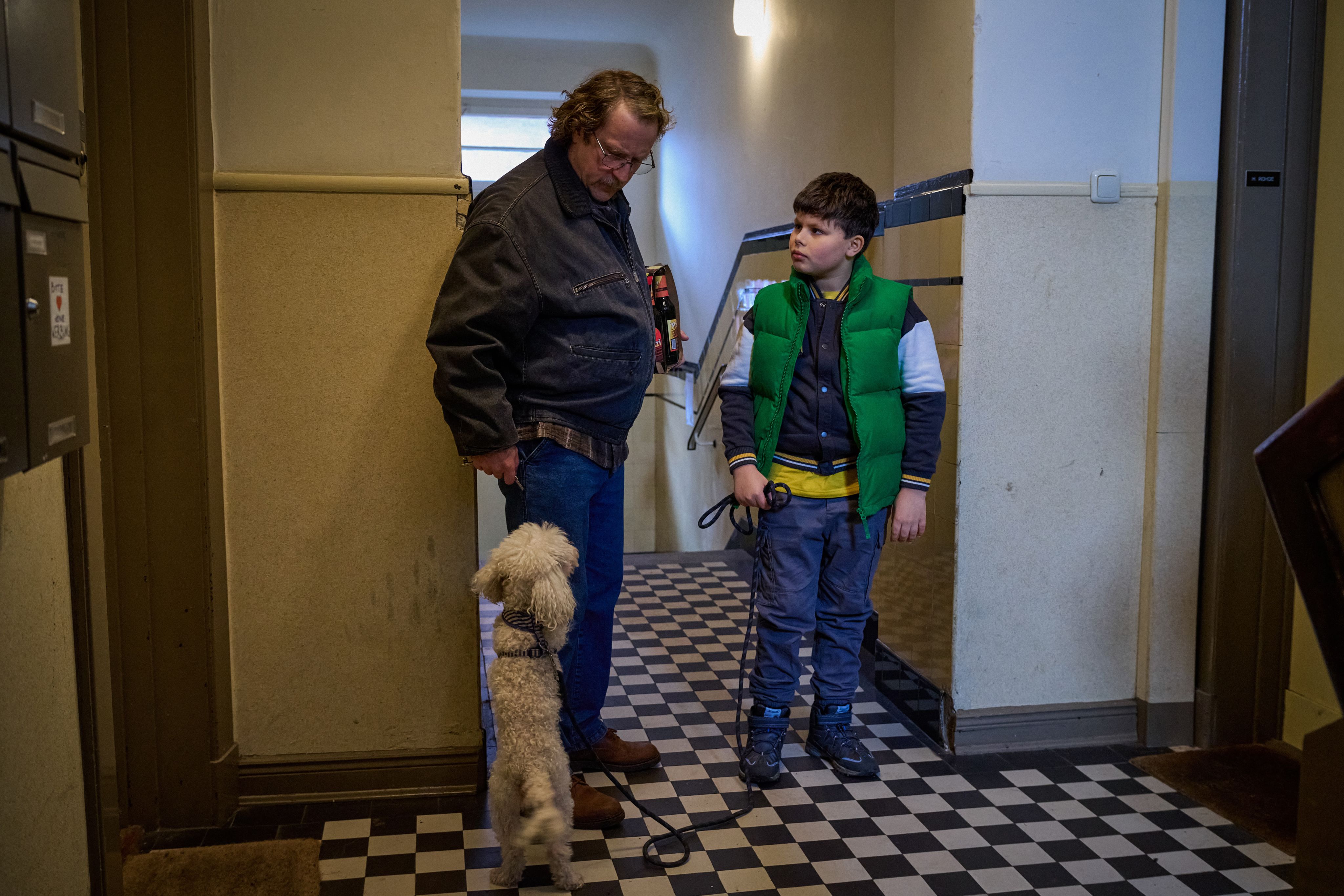 Lars Jessen: 36 Drehbuchseiten Treppenhaus, dazu die Szenen in der kleinen Wohnung, dieser Film ist in vielerlei Hinsicht eine Herausforderung gewesen. Wir wollten den Alltag der Menschen, die im Haus wohnen, nicht zu sehr behindern. Die Szenenbildnerin und der Kameramann mussten den Ort in jeder Einstellung neu entdecken, damit der Film nicht klaustrophobisch wirkt. Und dann wollten wir nicht immer nur in diesem kleinen Schuhkasten drehen, sondern den Stadtteil Hamburg-Barmbek zeigen. Es ist ein architektonisch beeindruckendes Viertel, gerade wenn man von oben draufguckt. Gleichzeitig strahlt es so eine englische Arbeiterviertel-Romantik aus. Ich hatte schon immer große Lust darauf, einen Working-Class-Film zu machen.