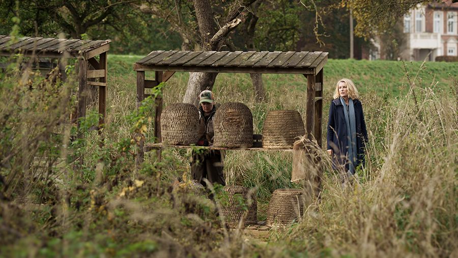 Bis vor drei Jahren haben die Feldhusens ihren Hof noch konventionell betrieben. Dann hat Marlies Feldhusen entschieden, dass Schluss sein muss mit all diesen Giften, die ihren Mann im täglichen Umgang todkrank gemacht haben. Seitdem ziehen die Feldhusens Bio-Äpfel. Dreißigmal werde eine Frucht bis zur Ernte gespritzt, warnt Marlies die Kommissarin, als die gerade genussvoll in einen Apfel beißt. „Save the Bees“ mahnt ein großes Plakat auf dem Hof und Marlies meint das ganz praktisch. Ihre persönliche Leidenschaft steckt sie in die Pflege einiger Bienenstöcke, um Honig zu produzieren, der so teuer ist, dass die Familie ihn sich selbst nicht leisten kann. Auf dem Frühstückstisch steht Honig vom Discounter.