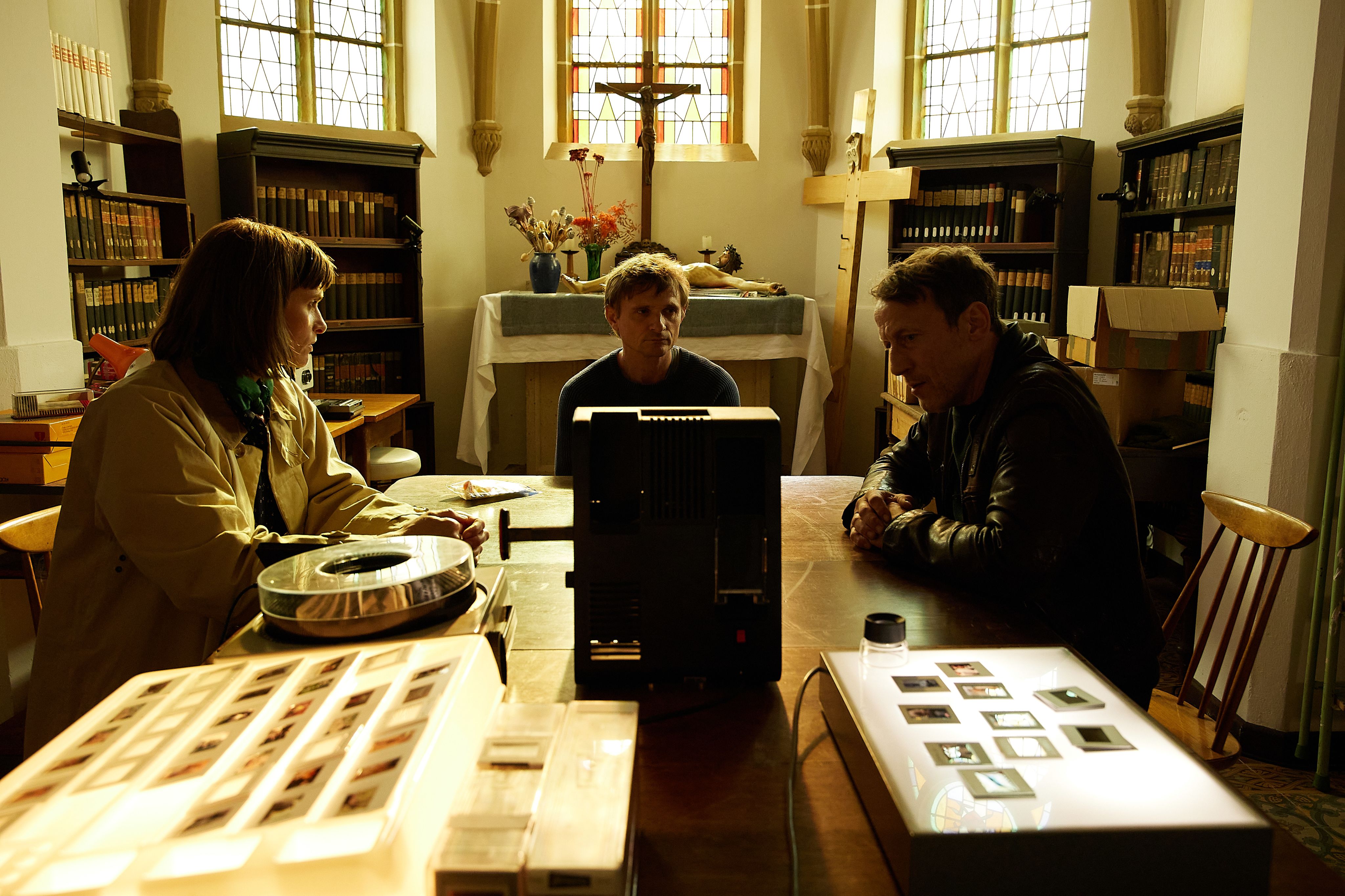 Wir durften und wollten ja nicht solche Bilder zeigen, sondern mussten allein über Falkes Reaktion deutlich machen, was er sieht und welche furchtbaren Verbrechen im Kloster geschehen sind. Es war nicht so leicht, das darzustellen. Falke klickt sich durch die Diasammlung, und der Zuschauer sieht, wie es ihn menschlich mitnimmt.